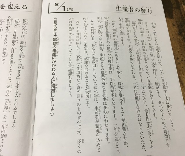 職場の朝礼で、日直が読み上げます。感想付きで。